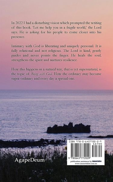 In 2022 I had a disturbing vision which prompted the writing of this book. 'Let me help you in a fragile world,' the Lord says. He is asking for his people to come closer into his presence. Intimacy with God is liberating and uniquely personal. It is fully relational and not religious. The Lord is kind, gently guides and never points the finger. He heals the soul, strengthens the spirit and nurtures resilience. How this happens in a natural way, that is yet supernatural, is the topic of Being with God. How the ordinary may become supra-ordinary and every day a special one. the ebook is available for free from AgapeDeum.com