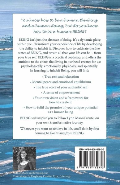 You know how to be a human thinking, and a human doing, but do you know how to be a human BEING? BEING isn't just the absence of doing. It's a dynamic place within you. Transform your experience of life by developing the ability to inhabit it. Discover how to cultivate the five states of BEING, and create all that your life can be - from your true self. BEING is a practical roadmap, and offers the antidote to the chaos that living in our head creates for us: psychologically, emotionally, physically, and spiritually. In learning to inhabit Being, you will find: ¿ True rest and relaxation ¿ Mental peace and emotional equilibrium ¿ The true voice of your authentic self ¿ A sense of empowerment ¿ Your own vision and a framework for how to create it. ¿ How to fulfil the promise of your unique potential as a human being. In a society obsessed with switching-off, and chilling-out, few have any consistent experience of true rest and relaxation. The kind that restores and re-aligns us, that deepens our experience of life. Especially the kind that brings us back to ourselves - fully experiencing life, instead of merely thinking and doing. Coming to live in Being is also an alternative to the escape routes of excess food, sugar, alcohol, drugs, shopping etc. You create a life you don't need to escape from. BEING is the 101 on Being: understanding it, recognizing it, and cultivating experiences of it. Firstly, it leads you along the path towards peace, equilibrium and happiness by learning to live in Being. Then it expands into how you create all that you want in yourself and your life, by also learning to live from Being. With a clearly set out structure, BEING leads readers through an exploration of all that Being is. You come out of your head and into your heart, become awake and aware, and create a vision for yourself and your life. In Head Stuff we see what we experience by living in our heads, in a mostly head world. In Heart Stuff we learn to live more from our hearts. Then we journey through the five fundamental states of BEING, with chapters on each: Love, Awareness, Acceptance, Gratitude, and Creativity. These concepts are illustrated, and brought to life, through extracts from the author's own journals, detailing the A-Z of her transformative journey to living in and from BEING, making them more relatable for readers. For each state of Being there is a Key Points summary, and a Putting it into Practise section - with tips and ideas to start cultivating each state. The last section of the book, Transformation, has a detailed framework, taking you through all the practical steps to integrating all of the concepts into your life. Finally, the reader is taken through the process of creating their own vision for their life, and building the framework to achieve it. Counsellor/therapist Lynn Mann guides you clearly, and systematically, along the route she took, towards fulfilling the promise of your unique human potential. The destination is a better experience of life, with less mental and emotional turmoil. Written in a friendly, engaging, and collaborative style, BEING draws readers into seeing and believing that transformation in themselves and their life is not only possible but inevitable, by following the process that the author has experienced and sets out here. BEING is The Power of Now by Eckhart Tolle meets Untamed by Glennon Doyle.Whatever you want to achieve in lif