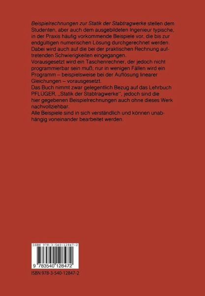 Im Herbst 1978 wurde vom erstgenannten Verfasser das Buch "Statik der Stab tragwerke" veröffentlicht. Beispiele wurden dort nur gebracht, wenn dies für die anschauliche Darstellung der theoretischen Zusammenhänge erforderlich schien. Im vorliegenden Buch werden Beispiele dargestellt, die mehr auf die Proble me der praktischen Rechnung eingehen sollen. Jedes dieser Beispiele wird bis zur endgültigen numerischen Lösung vorgerechnet, um anhand dieser Berech nung die auftretenden Schwierigkeiten aufzuzeigen. Bei der numerischen Rech nung wird angenommen, daß ein Taschenrechner zur Verfügung steht; auf eine Programmierbarkeit wird verzichtet. Nur in wenigen Fällen wird ein Pro gramm vorausgesetzt und das Ergebnis ohne Zwischenrechnung angegeben, wie zum Beispiel bei der Auflösung linearer Gleichungen. Die programmierte Da tenverarbeitung ist für die Statik - insbesondere für Flächenträger - so wich tig, daß sie ein eigenes Buch erfordert. Bei den Beispielen wird häufig Bezug auf die "Statik der Stabtragwerke" ge nommen. Das Buch ist aber trotzdem nicht als "zweiter Band" hierzu anzuse hen. Alle Beispiele sind für sich verständlich und können unabhängig voneinan der bearbeitet werden. Der Schwierigkeitsgrad ist durchschnittlich höher als bei den Beispielen der "Statik der Stabtragwerke". Die Verfasser sind den Herren Dr.-Ing. Stern, DrAng. Gensichen, Dipl.-Ing. Menze1, Hümpel und insbesondere Frau Graf zu großem Dank verpflichtet. Sie danken auch dem Springer-Verlag für die gewohnte hervorragende Ausstattung des Buches und die vorbildliche Zusammenarbeit. Hannover, im Oktober 1983 A. Pflüger H. Spitzer Inhaltsverzeichnis Teil I Statik starrer Systeme Symbole für Lager und Stabverbindungen 1.1 Lagersymbole . . . . . . . .
