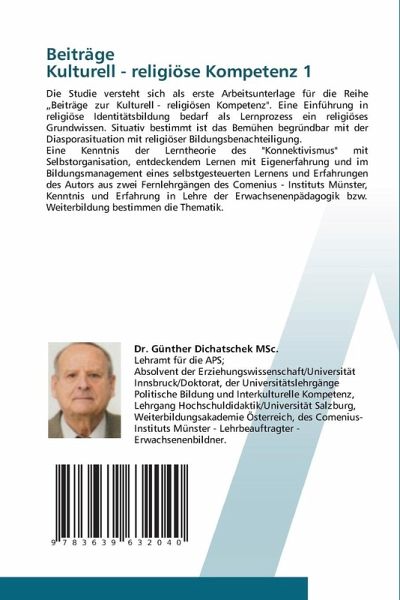 Die Studie versteht sich als erste Arbeitsunterlage für die Reihe "Beiträge zur Kulturell - religiösen Kompetenz". Eine Einführung in religiöse Identitätsbildung bedarf als Lernprozess ein religiöses Grundwissen. Situativ bestimmt ist das Bemühen begründbar mit der Diasporasituation mit religiöser Bildungsbenachteiligung.Eine Kenntnis der Lerntheorie des "Konnektivismus" mit Selbstorganisation, entdeckendem Lernen mit Eigenerfahrung und im Bildungsmanagement eines selbstgesteuerten Lernens und Erfahrungen des Autors aus zwei Fernlehrgängen des Comenius - Instituts Münster, Kenntnis und Erfahrung in Lehre der Erwachsenenpädagogik bzw. Weiterbildung bestimmen die Thematik.
