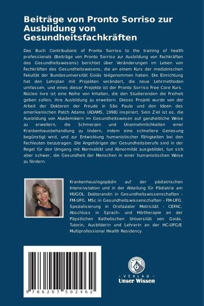 Das Buch Contributions of Pronto Sorriso to the training of health professionals (Beiträge von Pronto Sorriso zur Ausbildung von Fachkräften des Gesundheitswesens) berichtet über Veränderungen im Leben von Fachkräften des Gesundheitswesens, die an einem Kurs der medizinischen Fakultät der Bundesuniversität Goiás teilgenommen haben. Die Einrichtung hat den Lehrplan mit Projekten verändert, die neue Lehrmethoden umfassen, und eines dieser Projekte ist der Pronto Sorriso Free Core Kurs. Núcleo livre ist eine Reihe von Inhalten, die den Studierenden die Freiheit geben sollen, ihre Ausbildung zu erweitern. Dieses Projekt wurde von der Arbeit der Doktoren der Freude in São Paulo und den Ideen des amerikanischen Patch Adams (ADAMS, 1998) inspiriert. Sein Ziel ist es, die Ausbildung von Akademikern im Gesundheitswesen auf ganzheitliche Weise zu erweitern, die Schmerzen und Unannehmlichkeiten einer Krankenhausbehandlung zu lindern, indem eine schnellere Genesung begünstigt wird, und zur Entwicklung humanistischer Fähigkeiten bei den Fachleuten beizutragen. Die Angehörigen der Gesundheitsberufe sind in der Regel für den Umgang mit Normalität und Abnormität ausgebildet, tun sich aber schwer, die Gesundheit der Menschen in einer humanistischen Weise zu fördern.