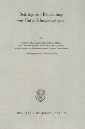 H. Enke, Zur Problematik von Zielordnungen und Zielsystemen - H. Körner, Korreferat - R. Blum, Das Sozialprodukt als Entwicklungsindikator - U. E. Simonis, Korreferat - H. R. Hemmer, Zur Vereinbarkeit des Wachstums- und Beschäftigungszieles in Entwicklungsländern - M. Nikolinakos, Korreferat - W. Güldner, Alternative Zielstrategien der Entwicklungspolitik - B. Knall, Korreferat - V. Timmermann, Über die entwicklungspolitische Bedeutung einzelner Sektoren