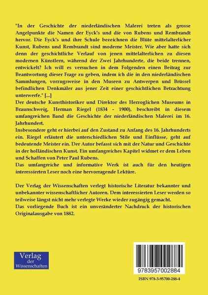 Der deutsche Kunsthistoriker und Direktor des Herzoglichen Museums in Braunschweig, Herman Riegel (1834 - 1900), beschreibt in diesem umfangreichen Band die Geschichte der niederländischen Malerei im 16. Jahrhundert.