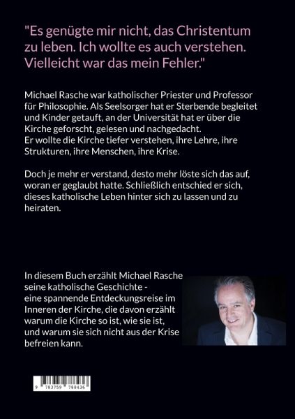 "Es genügte mir nicht, das Christentum zu leben. Ich wollte es auch verstehen. Vielleicht war das mein Fehler." Michael Rasche war katholischer Priester und Professor für Philosophie. Als Seelsorger hat er Sterbende begleitet und Kinder getauft, an der Universität hat er über die Kirche geforscht, gelesen und nachgedacht. Er wollte die Kirche tiefer verstehen, ihre Lehre, ihre Strukturen, ihre Menschen, ihre Krise. Doch je mehr er verstand, desto mehr löste sich das auf, woran er geglaubt hatte. Michael Rasche entschied sich schließlich, dieses katholische Leben hinter sich zu lassen und zu heiraten. In diesem Buch erzählt Michael Rasche seine katholische Geschichte - eine spannende Entdeckungsreise im Inneren der Kirche, die dem auf den Grund geht, warum die Kirche so ist, wie sie ist, und warum sie sich aus der Krise nicht befreien kann.