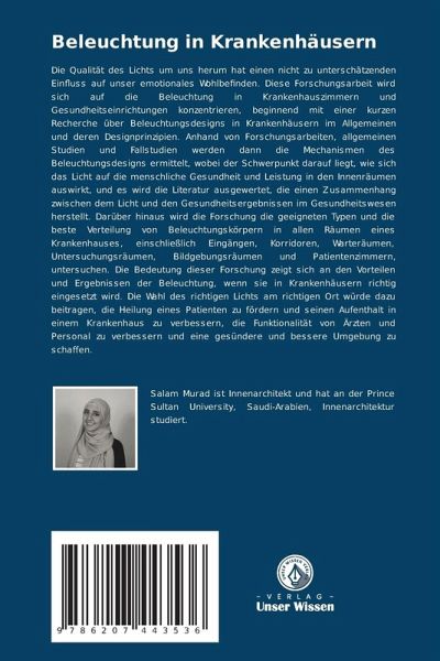 Die Qualität des Lichts um uns herum hat einen nicht zu unterschätzenden Einfluss auf unser emotionales Wohlbefinden. Diese Forschungsarbeit wird sich auf die Beleuchtung in Krankenhauszimmern und Gesundheitseinrichtungen konzentrieren, beginnend mit einer kurzen Recherche über Beleuchtungsdesigns in Krankenhäusern im Allgemeinen und deren Designprinzipien. Anhand von Forschungsarbeiten, allgemeinen Studien und Fallstudien werden dann die Mechanismen des Beleuchtungsdesigns ermittelt, wobei der Schwerpunkt darauf liegt, wie sich das Licht auf die menschliche Gesundheit und Leistung in den Innenräumen auswirkt, und es wird die Literatur ausgewertet, die einen Zusammenhang zwischen dem Licht und den Gesundheitsergebnissen im Gesundheitswesen herstellt. Darüber hinaus wird die Forschung die geeigneten Typen und die beste Verteilung von Beleuchtungskörpern in allen Räumen eines Krankenhauses, einschließlich Eingängen, Korridoren, Warteräumen, Untersuchungsräumen, Bildgebungsräumen und Patientenzimmern, untersuchen. Die Bedeutung dieser Forschung zeigt sich an den Vorteilen und Ergebnissen der Beleuchtung, wenn sie in Krankenhäusern richtig eingesetzt wird. Die Wahl des richtigen Lichts am richtigen Ort würde dazu beitragen, die Heilung eines Patienten zu fördern und seinen Aufenthalt in einem Krankenhaus zu verbessern, die Funktionalität von Ärzten und Personal zu verbessern und eine gesündere und bessere Umgebung zu schaffen.