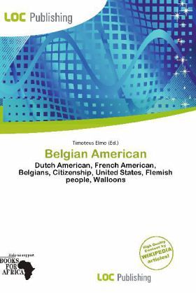 Please note that the content of this book primarily consists of articles available from Wikipedia or other free sources online. Belgian Americans are citizens of the United States who are of Belgian ancestry. 'Belgian' is not considered an ethnic term (Flemings and Walloons are the two largest ethnic groups in Belgium). There were no Belgians (and thus no Belgian Americans either) prior to 1830, the de jure establishment of Belgium (although the name 'Belgium' was already used prior 1830 to distinguish the Southern Netherlands from the Netherlands). Prior to this, immigrants from the region that is present-day Belgium identified themselves as either Dutch or French Americans, hence tracing family roots to a place in Belgium does not make one a Belgian American per se.