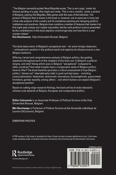 This book takes stock of Belgium's exceptional and - for some foreign observers -schizophrenic position in the political world and explains its idiosyncrasy to a non-Belgian audience. Offering a broad and comprehensive analysis of Belgian politics, the guiding questions throughout each of the chapters of this book are: Is Belgium a political enigma, and why? Along which axes is Belgium "exceptional" compared to other countries? And what insights does a comparative study of Belgian politics have to offer? The book therefore provides a critical assessment of how Belgian politics "stands out" internationally, both in good and bad ways - including consociationalism, federalism, democratic innovations, Euroscepticism, government formation, gender equality, among others - and which factors can explain Belgium's exceptional position. Based on cutting-edge research findings, the book will be of wide interest to scholars and students of Belgian politics, European Politics and Comparative politics. The Open Access version of this book, available at www.taylorfrancis.com, has been made available under a Creative Commons Attribution-Non Commercial-No Derivatives 4.0 license.