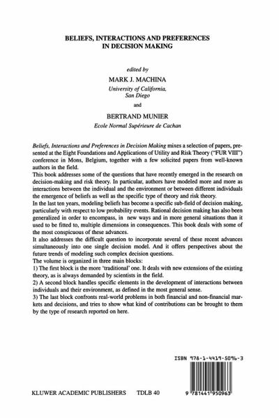 Beliefs, Interactions and Preferences in Decision Making mixes a selection of papers, presented at the Eighth Foundations and Applications of Utility and Risk Theory (`FUR VIII') conference in Mons, Belgium, together with a few solicited papers from well-known authors in the field.