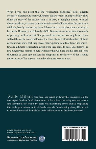 What if you had proof that the resurrection happened? Real, tangible evidence? Skeptics and many Christians today see it as an impossibility. They think the story of the resurrection is, at best, a metaphor meant to reveal deeper truths or, at worst, completely fabricated folklore. Most discard it as a wild tale, hastily made up by Jesus' followers to try and give some meaning to his death. However, careful study of Old Testament stories written thousands of years ago will show that God planned the resurrection long before Jesus walked the earth. A careful look at the content and historical context of these accounts will show that they reveal many specific details of Jesus' life, ministry, and ultimate resurrection ages before they came to pass. Specifically, the five biographies examined here will show that God laid out his plan for Jesus thousands of years ago and left the blueprints in the history of the Israelite nation as proof for anyone who takes the time to seek it out.