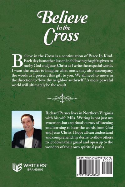 Book Synopsis: Believe in the Cross is a continuation of Peace In Kind. Each day is another lesson in following the gifts given to me by God and Jesus Christ as I write these special words. I want the reader to imagine what music may also accompany the words as I present this gift to you. We all need to move in the direction to "love thy neighbor as thyself." A more peaceful world will ultimately be the result. ¿¿Autobiography: Richard Parnes lives in Northern Virginia with his wife Mila. Writing is not just my avocation, but a spiritual journey of listening and learning to hear the words from God and Jesus Christ. I hope all can understand and comprehend my desire to allow others to let down their guard and open up to the wonders of their own spiritual paths.