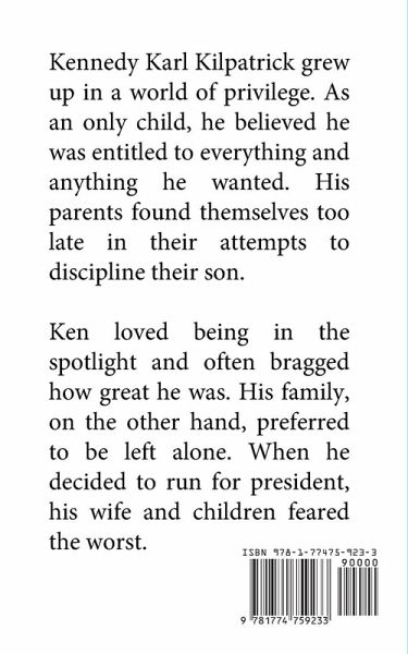 Kennedy Karl Kilpatrick was raised in a world of privilege. As an only child, he developed a strong sense of entitlement, believing he deserved everything he desired. His parents realized too late that they needed to instill discipline in him. Ken thrived in the spotlight, frequently boasting about his accomplishments. In contrast, his family valued their privacy and preferred a quieter life. When he announced his decision to run for president, his wife and children were filled with apprehension.