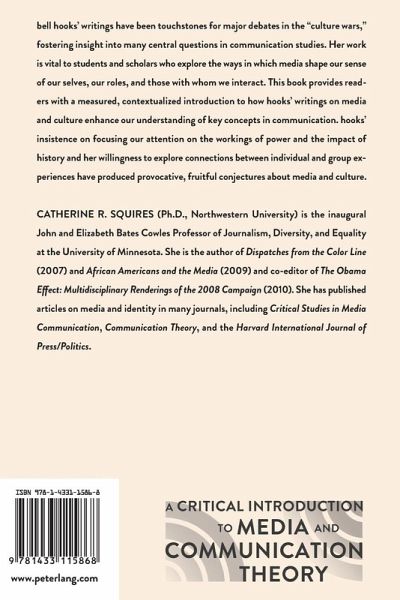 bell hooks' writings have been touchstones for major debates in the "culture wars", fostering insight into many central questions in communication studies. Her work is vital to students and scholars who explore the ways in which media shape our sense of our selves, our roles, and those with whom we interact. This book provides readers with a measured, contextualized introduction to how hooks' writings on media and culture enhance our understanding of key concepts in communication. hooks' insistence on focusing our attention on the workings of power and the impact of history and her willingness to explore connections between individual and group experiences have produced provocative, fruitful conjectures about media and culture.