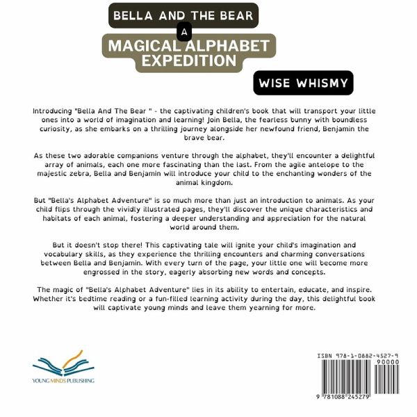Introducing "Bella and the Bear" - the captivating children's book that will transport your little ones into a world of imagination and learning! Join Bella, the fearless bunny with boundless curiosity, as she embarks on a thrilling journey alongside her newfound friend, Benjamin the brave bear. As these two adorable companions venture through the alphabet, they'll encounter a delightful array of animals, each one more fascinating than the last. From the agile antelope to the majestic zebra, Bella and Benjamin will introduce your child to the enchanting wonders of the animal kingdom. But "Bella's Alphabet Adventure" is so much more than just an introduction to animals. As your child flips through the vividly illustrated pages, they'll discover the unique characteristics and habitats of each animal, fostering a deeper understanding and appreciation for the natural world around them. But it doesn't stop there! This captivating tale will ignite your child's imagination and vocabulary skills, as they experience the thrilling encounters and charming conversations between Bella and Benjamin. With every turn of the page, your little one will become more engrossed in the story, eagerly absorbing new words and concepts. The magic of "Bella's Alphabet Adventure" lies in its ability to entertain, educate, and inspire. Whether it's bedtime reading or a fun-filled learning activity during the day, this delightful book will captivate young minds and leave them yearning for more. So, why wait? Embark on this adventure with Bella and Benjamin, and watch as your child's knowledge and love for animals blossom. Order your copy of "Bella's Alphabet Adventure" today and let the learning and imagination begin!