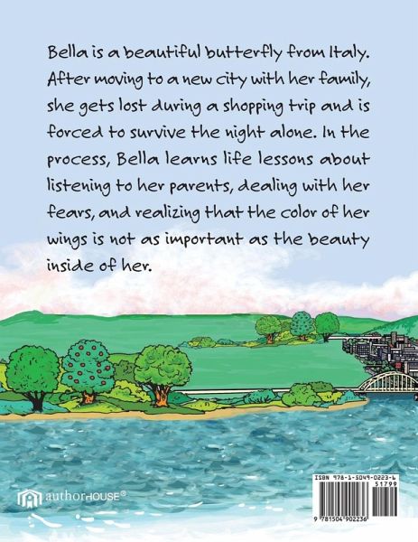 Bella is a beautiful butterfly from Italy. After moving to a new city with her family, she gets lost during a shopping trip and is forced to survive the night alone. In the process, Bella learns life lessons about listening to her parents, dealing with her fears, and realizing that the color of her wings is not as important as the beauty inside of her.