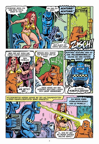 Der superbunte Weltraumwahnsinn geht in die vierte Runde!Das wurde aber auch wirklich Zeit - endlich erhalten Bella Star und Grok die lang verdiente Strafe für ihre Umtriebe! Wie üblich weitestgehend unschuldig mit von der Partie: Dr. Sönke Penner alias der geifernde Grapsch.Wie wird die Strafe aussehen? Erfahrt es in Das Gesetz des Sektors 27B!Außerdem mit im Heft: Eine weitere neue Geschichte aus dem Urak-Imperium!