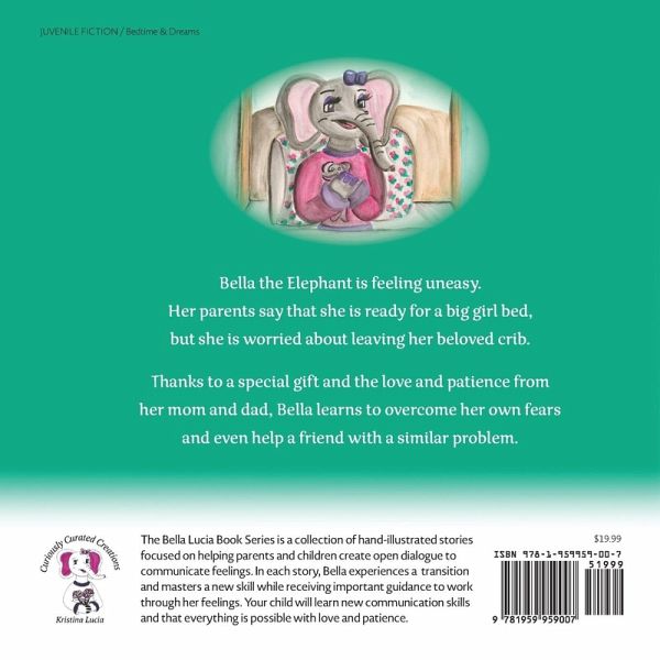 Winner! The Purple Dragonfly Book Award! Bella's Big Girl Bed has received a First Place award for Picture Books and an honorable mention in the category of Parenting. ¿Bella the Elephant is feeling uneasy. Her parents say that she is ready for a big girl bed, but she is worried about leaving her beloved crib. Thanks to a special gift, and the love and patience from her mom and dad, Bella learns to overcome her own fears and even help a friend with a similar problem.