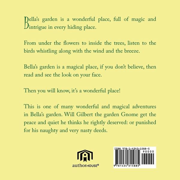 Bella's garden is a wonderful place, full of magic and intrigue in every hiding place. From under the flowers to inside the trees, listen to the birds whistling along with the wind and the breeze. Bella's garden is a magical place, if you don't believe, then read and see the look on your face. Then you will know, it's a wonderful place! This is one of many wonderful and magical adventures in Bella's garden. Will Gilbert the garden Gnome get the peace and quiet he thinks he rightly deserved: or punished for his naughty and very nasty deeds.