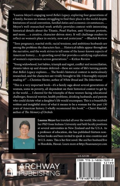 As a young girl in Michigan, Bella Colquhoun knows she'll be a writer. It's not easy for a woman in the 1920s to have a career of her own. She decides to never marry, but Ray promises to support her dreams. No one could have anticipated the railroad accident that would claim his life, teaching Bella things she never wanted to know about investigative journalism. She moves to New York to attend Columbia University, but she never loses touch with the families back in Michigan, brought together by a nephew given Ray's name. She eventually researches the family tree and decides to record the interrelated stories of extraordinary women who never quite became who they thought they would be. Across four generations, Bella traces the stories of women confronted by societal challenges as they struggle toward more than ordinary lives. Bella's family saga begins with European immigration to the Midwest and moves with the younger generations across 20th century America into the Pacific and even Africa. From women's suffrage to civil rights, the Titanic to the Great Depression, these women face conflict with spouses and family members related to gender roles, childbearing, politics, and education. Yet, they find the strength to be someone, driven to rise above the challenges of a work-in-progress America.