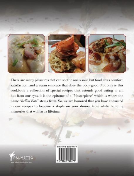 There are many pleasures that can soothe one's soul, but food gives comfort, satisfaction, and a warm embrace that does the body good. Not only is this cookbook a collection of special recipes that extends good eating to all, but from our eyes, it is the epitome of a "Masterpiece" which is where the name "Bellini Eats" stems from. So, we are honored that you have entrusted in our recipes to become a staple on your dinner table while building memories that will last a lifetime.