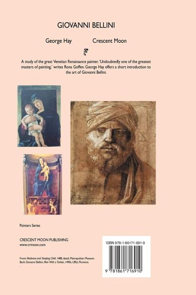 By George Hay Giovanni Bellini (c. 1430-1516) is the author of some of the most exquisite of Renaissance paintings. He is, in a sense, the painter's painter, who had a long career, like his pupil, Titian, in painting. He influenced many artists, among them Titian, Giorgione, Vecchio, Sebastiano del Piombo, and Albrecht Durer. His influences include Andreas Mantegna, his father, Jacopo Bellini, Antonello, and Donatello. Giovanni Bellini does everything in his paintings that Renaissance painters are supposed to do: he painted beautiful pictures, devotional images, of the Madonna, Christ and several saints; he painted mythological scenes, and scenes from history; he refined and defined Early Renaissance space, bringing it into the High Renaissance; he inaugurated a new feeling for landscape; he remained true to the sacred and emotional aspects of painting to the end of his career; he developed the several formats of Renaissance painting - the small, private devotional pictures, the large, public altarpieces, a host of secular portraits and large-scale friezes. One might see Bellini as supremely a High Renaissance artist, especially in his later altarpieces, where his sense of space seems in tune with Titian or Raphael. Bellini's style is very sweet. His paintings are full of a love for painting, and a love for his subjects. The ambiguities in his works do not arise from his intentions, which are, as with so many Renaissance painters, to be as exalting as possible. So his Madonnas and saints are lovingly painted. There is an undeniable sensuality in Giovanni Bellini's art. Central to his art is his sensuality. It is the same with the art of Leonardo, Caravaggio, Titian, Vermeer, Rembrandt, and Rubens. The sensuality of the paintings themselves, as objects, is crucial to their evaluation aesthetically. Bellini is a sensual painter - not simply in his treatment of eroticism, or in the eroticism of his forms, but also because he painted self-consciously erotic subjects. He painted female nudes: the Woman with a Mirror (in Vienna), in The Feast of the Gods (in Washington) and in the restollo of Truth (in Venice). Giovanni Bellini's sacred art is as erotic as his secular art, as with many a painter. Indeed, one might say that some of Bellini's Christian paintings are more erotic than his paintings of mythological or historical subjects. His Pietas, for instance, with that lovingly described dead, nude Christ, may be seen as more erotic than the Classical scenes. The eroticism of art depends a lot on the viewer's response. And on painterly surface and technique. With a full colour cover. Fully illustrated in a brand new format, including contemporaries of Bellini, with many new illustrations for this edition. 144pp. www.crmoon.com