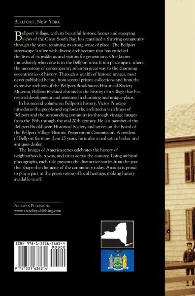 Bellport Village, with its beautiful historic homes and sweeping views of the Great South Bay, has remained a thriving community through the years, retaining its strong sense of place. The Bellport streetscape is alive with diverse architecture that has enriched the lives of its residents and visitors for generations. One knows immediately when one is in the Bellport area. It is a place apart, where the monotony of contemporary suburbia gives way to the charming eccentricities of history. Through a wealth of historic images, most never published before, from several private collections and from the extensive archives of the Bellport-Brookhaven Historical Society Museum, Bellport Revisited chronicles the history of a village that has resisted development and remained a charming and unique place.