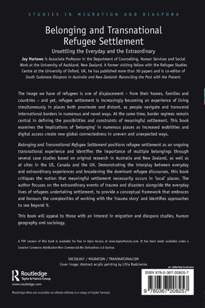 The image we have of refugees is one of displacement - from their homes, families and countries - and yet, refugee settlement is increasingly becoming an experience of living simultaneously in places both proximate and distant, as people navigate and transcend international borders in numerous and novel ways. At the same time, border regimes remain central in defining the possibilities and constraints of meaningful settlement. This book examines the implications of 'belonging' in numerous places as increased mobilities and digital access create new global connectedness in uneven and unexpected ways. Belonging and Transnational Refugee Settlement positions refugee settlement as an ongoing transnational experience and identifies the importance of multiple belongings through several case studies based on original research in Australia and New Zealand, as well as at sites in the US, Canada and the UK. Demonstrating the interplay between everyday and extraordinary experiences and broadening the dominant refugee discourses, this book critiques the notion that meaningful settlement necessarily occurs in 'local' places. The author focuses on the extraordinary events of trauma and disasters alongside the everyday lives of refugees undertaking settlement, to provide a conceptual framework that embraces and honours the complexities of working with the 'trauma story' and identifies approaches to see beyond it. This book will appeal to those with an interest in migration and diaspora studies, human geography and sociology.