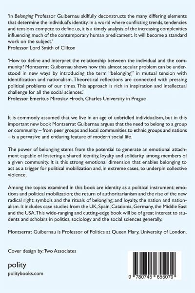 It is commonly assumed that we live in an age of unbridled individualism, but in this important new book Montserrat Guibernau argues that the need to belong to a group or community - from peer groups and local communities to ethnic groups and nations - is a pervasive and enduring feature of modern social life.