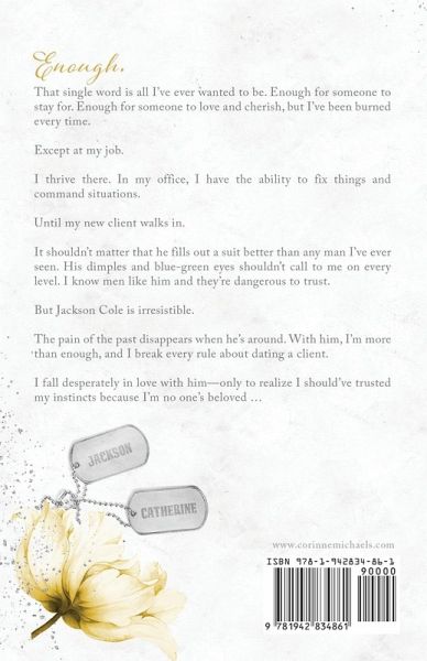 Enough. That single word is all I've ever wanted to be. Enough for someone to stay for. Enough for someone to love and cherish, but I've been burned every time. Except at my job. I thrive there. In my office, I have the ability to fix things and command situations. Until my new client walks in. It shouldn't matter that he fills out a suit better than any man I've ever seen. His dimples and blue-green eyes shouldn't call to me on every level. I know men like him and they're dangerous to trust. But Jackson Cole is irresistible. The pain of the past disappears when he's around. With him, I'm more than enough, and I break every rule about dating a client. I fall desperately in love with him-only to realize I should've trusted my instincts because I'm no one's beloved ...