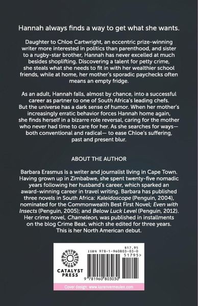 "Hannah always finds a way to get what she wants. Daughter to Chloe Cartwright, an eccentric prize-winning writer more interested in politics than parenthood, and sister to a rugby-star brother, Hannah has never excelled at much besides shoplifting. Discovering a talent for petty crime, she steals what she needs to fit in with her wealthier school friends, while at home, her mother's sporadic paychecks often mean an empty fridge. As an adult, Hannah falls, almost by chance, into a successful career as partner to one of South Africa's leading chefs. But the universe has a dark sense of humor. When her mother's increasingly erratic behavior forces Hannah home again, she finds herself in a bizarre role reversal, caring for the mother who never had time to care for her. As she searches for ways- both conventional and radical- to ease Chloe's suffering, past and present blur"--