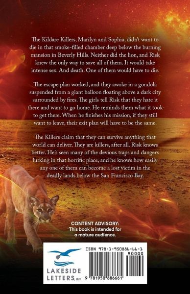 The Kildare Killers, Marilyn and Sophia, didn't want to die in that smoke-filled chamber deep below the burning mansion in Beverly Hills. Neither did the lion, and Risk knew the only way to save all of them. It would take intense sex. And death. One of them would have to die. The escape plan worked, and they awoke in a gondola suspended from a giant balloon floating above a dark city surrounded by fires. The girls tell Risk that they hate it there and want to go home. He reminds them what it took to get there. When he finishes his mission, if they still want to leave, their exit plan will have to be the same. The Killers claim that they can survive anything that world can deliver. They are killers, after all. Risk knows better. He's seen many of the devious traps and dangers lurking in that horrific place, and he knows how easily any one of them can become a lost victim in the deadly lands below the San Francisco Bay. Content advisory: This book is intended for a mature audience.