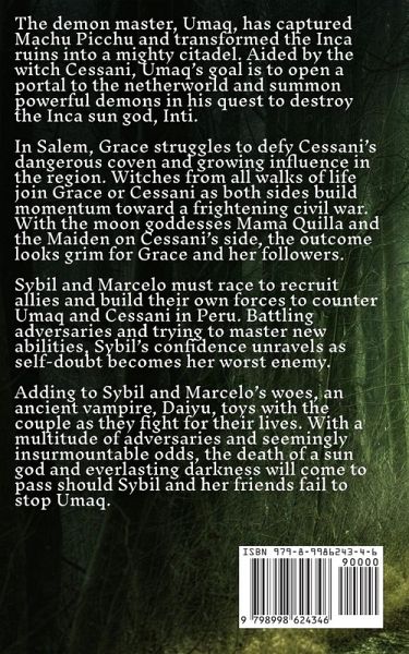 The demon master, Umaq, has captured Machu Picchu and transformed the Inca ruins into a mighty citadel. Aided by the witch Cessani, Umaq's goal is to open a portal to the netherworld and summon powerful demons in his quest to destroy the Inca sun god, Inti. In Salem, Grace struggles to defy Cessani's dangerous coven and growing influence in the region. Witches from all walks of life join Grace or Cessani as both sides build momentum toward a frightening civil war. With the moon goddesses Mama Quilla and the Maiden on Cessani's side, the outcome looks grim for Grace and her followers. Sybil and Marcelo must race to recruit allies and build their own forces to counter Umaq and Cessani in Peru. Battling adversaries and trying to master new abilities, Sybil's confidence unravels as self-doubt becomes her worse enemy. Adding to Sybil and Marcelo's woes, an ancient vampire named Daiyu toys with the couple as they fight for their lives. With a multitude of adversaries and seemingly insurmountable odds, the death of a sun god and everlasting darkness will come to pass should Sybil and her friends fail to stop Umaq.