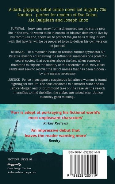 Dark gripping debut crime novel "PERFECT FOR MURDER-MYSTERY FANS!" "Parr is adept at portraying his fictional world's most unpleasant characters" - Kirkus Reviews "An impressive debut that leaves the reader wanting more." - Reedsy Review In Parr's debut thriller, a runaway seeks revenge in the grim and gritty London of the 1970s, where a wealthy secret society pulls the strings. "Her chest fired up with pain at every gurgling intake of breath. She mustered a cry for help but managed just a whimper. She tried again and a hoarse scream was carried away in the wind. Then she heard the sound of the door opening ..." Survival - Jerry runs away from a chequered past to start a new life in the city. He wants to be in control of his own destiny, to live by his own rules and above all to protect the girl he is falling in love with. He finds himself homeless, at first sleeping rough on the streets until opportunity comes his way. Jerry's actions lead readers to question how far they might go to survive, to better their futures, to right the wrongs inflicted on them and to protect those that they care about. Would they be prepared to deliver their own version of justice? Betrayal - In a mansion house in London, former spymaster Sir Peter is lavishly entertaining the influential members of a powerful secret society that operates above the law. When someone threatens to expose the identity of this secretive club, they close ranks and seek to recover the list of names that has been hidden. When others fail spectacularly, Sir Peter instructs his devoted butler, an ex commando, to step in. Justice - Police investigate a suspicious fall after a woman is found fighting for her life. The case escalates to a murder hunt and the plot thickens as the search intensifies to find the killer. Female detective Janice Morgan plays a pivotal role in uncovering a brutal gang but fears for her safety mount when she goes missing. The chase is on to find the mystery ringleader and stop a major shipment of drugs from reaching Britain's streets. Dark themes challenge the moral compass. Readers will be rewarded with human stories and richly drawn characters in Tim Parr's debut crime novel Below The Strandline.