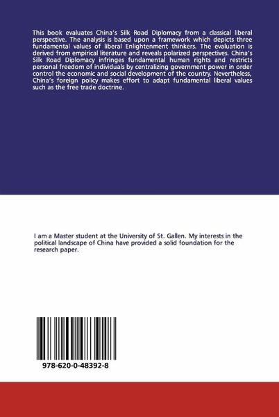 This book evaluates China's Silk Road Diplomacy from a classical liberal perspective. The analysis is based upon a framework which depicts three fundamental values of liberal Enlightenment thinkers. The evaluation is derived from empirical literature and reveals polarized perspectives. China's Silk Road Diplomacy infringes fundamental human rights and restricts personal freedom of individuals by centralizing government power in order control the economic and social development of the country. Nevertheless, China's foreign policy makes effort to adapt fundamental liberal values such as the free trade doctrine.