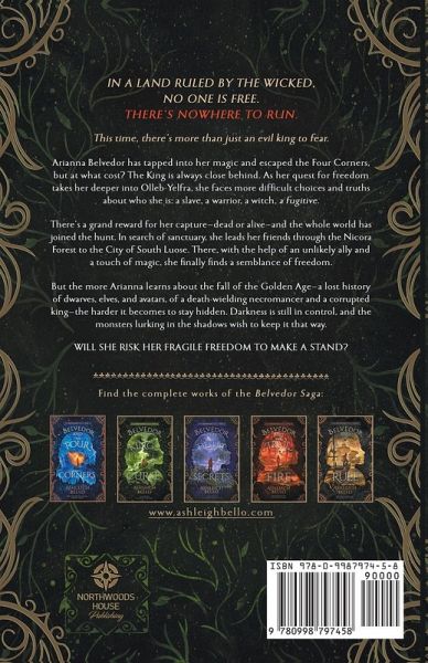 IN A LAND RULED BY THE WICKED, NO ONE IS FREE. THERE'S NOWHERE TO RUN. This time, there's more than just an evil king to fear. Arianna Belvedor has tapped into her magic and escaped the Four Corners, but at what cost? The King is always close behind. As her quest for freedom takes her deeper into Olleb-Yelfra, she faces more difficult choices and truths about who she is: a slave, a warrior, a witch, a fugitive. There's a grand reward for her capture-dead or alive-and the whole world has joined the hunt. In search of sanctuary, she leads her friends through the Nicora Forest to the City of South Luose. There, with the help of an unlikely ally and a touch of magic, she finally finds a semblance of freedom. But the more Arianna learns about the fall of the Golden Age-a lost history of dwarves, elves, and avatars, of a death-wielding necromancer and a corrupted king-the harder it becomes to stay hidden. Darkness is still in control, and the monsters lurking in the shadows wish to keep it that way. Will she risk her fragile freedom to make a stand? Belvedor and the King's Curse is the sequel in Ashleigh Bello's gripping YA Epic Fantasy Adventure series-the third edition was released in January 2021, with added and expanded scenes! __________________________ "One word - brilliant! Fantastic characters and amazing world building. Book 1 was great but book 2 was better. You really care for our four main characters, but as others come and go throughout the book you can't but wonder who is safe. Fantasy with a slight dystopian feel that can be brutal ..." - From Connie, UK ¿¿¿¿¿ Read all the Belvedor Books! The Belvedor Saga by Ashleigh Bello Belvedor and the Four Corners Belvedor and the King's Curse Belvedor and the Desert of Secrets Belvedor and the Trail of Fire Belvedor and the Golden Rule