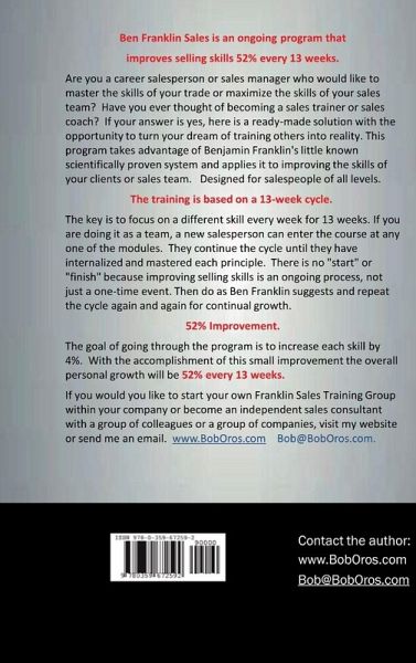 I HAVE A SERIOUS QUESTION FOR YOU. Have you ever thought about being an independent sales trainer for a variety of companies in your local area? Do you enjoy helping people increase their sales and profits? Do you think you have what it takes? If your answer is yes, but you don't know how or where to begin, I may be able to help you. For more than 25 years I have been perfecting a sales training course that can be promoted to small and large businesses in your area and facilitated by someone with your skills. The training is designed to solve a huge problem for companies who have a small sales team and an equally small budget for sales training. Even many of the larger companies have cut their training budget and are looking for ways to increase the skills of their sales team. The course is based on a 13-week cycle with a weekly sales meeting facilitated by you. The 13 modules are such that anyone can enter the program on any week during the 13 cycles. This gives you the chance to be part of the solution for many companies who are in need of increased sales. This book is all you need.