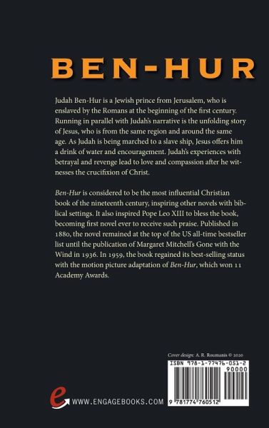 Judah Ben-Hur is a Jewish prince from Jerusalem, who is enslaved by the Romans at the beginning of the first century. Running in parallel with Judah's narrative is the unfolding story of Jesus, who is from the same region and around the same age. As Judah is being marched to a slave ship, Jesus offers him a drink of water and encouragement. Judah's experiences with betrayal and revenge lead to love and compassion after he witnesses the crucifixion of Christ. Ben-Hur is considered to be the most influential Christian book of the nineteenth century, inspiring other novels with biblical settings.…mehr