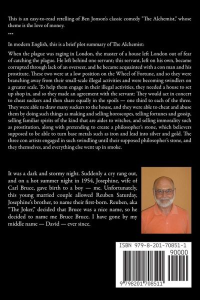 This is an easy-to-read retelling of Ben Jonson's classic comedy "The Alchemist," whose theme is the love of money. Do you know a language other than English? If you do, I give you permission to translate this book, copyright your translation, publish or self-publish it, and keep all the royalties for yourself. (Do give me credit, of course, for the original retelling.) I would like to see my retellings of classic literature used in schools. Teachers need not actually teach my retellings. Teachers are welcome to give students copies of my eBooks as background material. For example, if they are teaching Homer's Iliad and Odyssey, teachers are welcome to give students copies of my Virgil's Aeneid: A Retelling in Prose and tell students, "Here's another ancient epic you may want to read in your spare time."