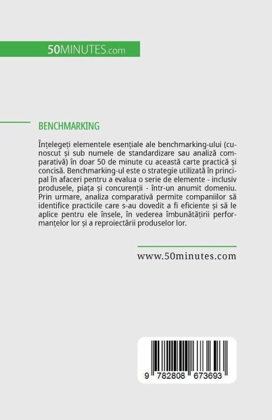 În¿elege¿i elementele esen¿iale ale benchmarking-ului (cunoscut ¿i sub numele de standardizare sau analiz¿ comparativ¿) în doar 50 de minute cu aceast¿ carte practic¿ ¿i concis¿. Benchmarking-ul este o strategie utilizat¿ în principal în afaceri pentru a evalua o serie de elemente - inclusiv produsele, piäa ¿i concuren¿ii - într-un anumit domeniu. Prin urmare, analiza comparativ¿ permite companiilor s¿ identifice practicile care s-au dovedit a fi eficiente ¿i s¿ le aplice pentru ele însele, în vederea îmbun¿t¿¿irii performan¿elor lor ¿i a reproiect¿rii produselor lor. Aceast¿ carte v¿ ofer¿ o introducere util¿ despre cum s¿ utilizäi analiza comparativ¿ pentru a descoperi cele mai bune practici ale companiilor de top ¿i s¿ le adaptäi pentru a v¿ îmbun¿t¿¿i propria afacere. De asemenea, include studii de caz din viäa real¿, o discu¿ie despre deficien¿ele instrumentului, inclusiv costurile sale poten¿iale, ¿i o introducere în modele conexe, cum ar fi managementul calit¿¿ii totale ¿i PDCA.