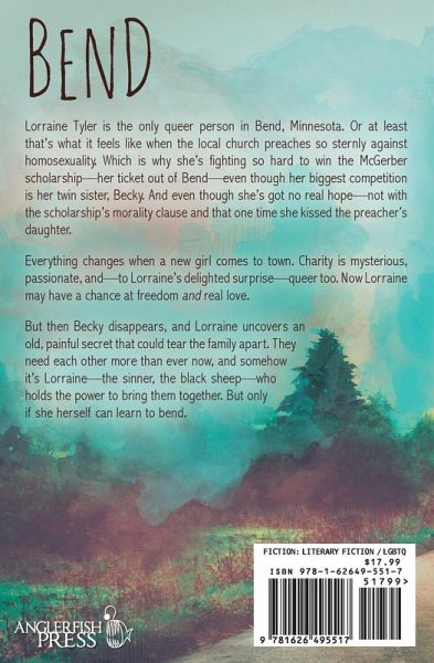 Lorraine Tyler is the only queer person in Bend, Minnesota. Or at least that's what it feels like when the local church preaches so sternly against homosexuality. Which is why she's fighting so hard to win the McGerber scholarship-her ticket out of Bend-even though her biggest competition is her twin sister, Becky. And even though she's got no real hope-not with the scholarship's morality clause and that one time she kissed the preacher's daughter. Everything changes when a new girl comes to town. Charity is mysterious, passionate, and-to Lorraine's delighted surprise-queer too. Now Lorraine may have a chance at freedom and real love. But then Becky disappears, and Lorraine uncovers an old, painful secret that could tear the family apart. They need each other more than ever now, and somehow it's Lorraine-the sinner, the black sheep-who holds the power to bring them together. But only if she herself can learn to bend.