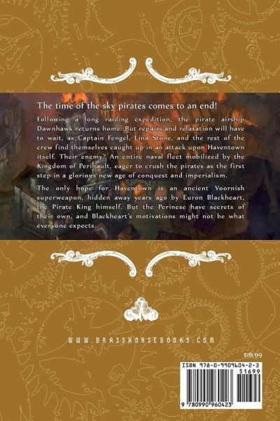 Following a long raiding expedition, the pirate airship Dawnhawk returns home. But repairs and relaxation will have to wait, as Captain Fengel, Lina Stone, and the rest of the crew find themselves caught up in an attack upon Haventown itself. Their enemy? An entire naval fleet mobilized by the Kingdom of Perinault, eager to crush the pirates as the first step in a glorious new age of conquest and imperialism. The only hope for Haventown is an ancient Voornish superweapon, hidden away years ago by Euron Blackheart, the Pirate King himself. But the Perinese have secrets of their own, and Blackheart's motivations may not be what everyone expects.
