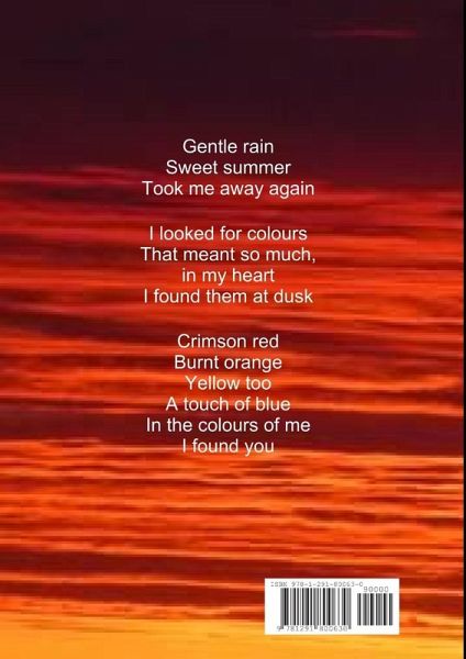 A collection of beautiful and uplifting verse that describe nature,love,beauty,the sea,the sky and much more . The discovery of the soul,through words.... This book has especially created in to A4 size for easeof reading and for sharing Gentle rain Sweet summer Took me away again I looked for colours That meant so much, in my heart I found them at dusk Crimson red Burnt orange Yellow too A touch of blue In the colours of me I found you Matthew.B