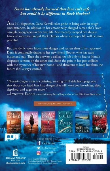 Love and danger collide in Rock Harbor in this riveting romantic suspense. As a 911 dispatcher, Dana Newell takes pride in being calm in tough circumstances. In addition to her emotionally-charged career, she's faced enough emergencies in her own life. She recently escaped her abusive fiancé to move to tranquil Rock Harbor where she hopes life will be more peaceful. But the idyllic town hides more danger and secrets than it first appeared. Dana is continually drawn to her new friend Boone, who has scars inside and out. Then she answers a call at her job only to hear a friend's desperate screams on the other end. Soon the pain in her past collides with the mysteries of her new home--and threatens to keep her from the future she's always wanted. This full-length romantic suspense can be read as a standalone but is also part of the Rock Harbor series. * Book one: Without a Trace * Book two: Beyond a Doubt * Book three: Into the Deep * Book four: Cry in the Night * Book five: Beneath Copper Falls Includes discussion questions. "I loved returning to Rock Harbor and you will too. Beneath Copper Falls is Colleen at her best!" --Dani Pettrey, bestselling author of the Alaskan Courage and Chesapeake Valor series "Beneath Copper Falls is a twisting, turning thrill ride from page one that drops you head first into danger that will leave you breathless, sleep deprived, and eager for more!" --Lynette Eason, award-winning, bestselling author of the Elite Guardians series