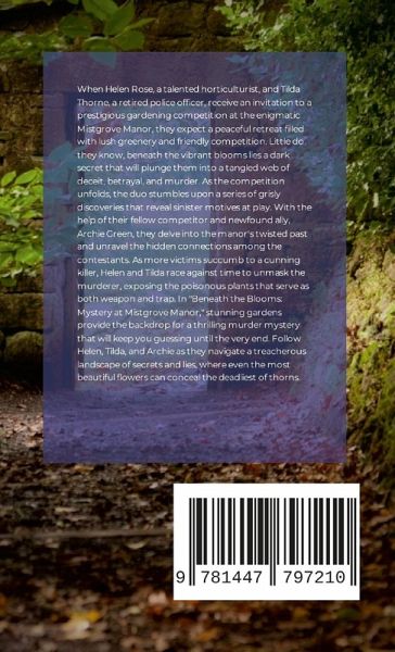 When Helen Rose, a talented horticulturist, and Tilda Thorne, a retired police officer, receive an invitation to a prestigious gardening competition at the enigmatic Mistgrove Manor, they expect a peaceful retreat filled with lush greenery and friendly competition. Little do they know, beneath the vibrant blooms lies a dark secret that will plunge them into a tangled web of deceit, betrayal, and murder. As the competition unfolds, the duo stumbles upon a series of grisly discoveries that reveal sinister motives at play. With the help of their fellow competitor and newfound ally, Archie Green, they delve into the manor's twisted past and unravel the hidden connections among the contestants. As more victims succumb to a cunning killer, Helen and Tilda race against time to unmask the murderer, exposing the poisonous plants that serve as both weapon and trap. In "Beneath the Blooms: Mystery at Mistgrove Manor," stunning gardens provide the backdrop for a thrilling murder mystery that will keep you guessing until the very end. Follow Helen, Tilda, and Archie as they navigate a treacherous landscape of secrets and lies, where even the most beautiful flowers can conceal the deadliest of thorns.
