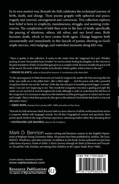 In its own modest way, Beneath the Falls celebrates the archetypal journey of birth, death, and change. These poems grapple with upheaval and peace, tragedy and renewal, estrangement and conversion. This collection explores how belief is born in simplicity, mundaneness, struggle, and seeming irrelevancies. The complexities of faith then arise in the face of death, specifically the passing of situations, others, old selves, and our loved ones. Birth becomes death, which in turn creates birth again. Change happens both incrementally and immediately in this fascicle of poems, showing us God's ample mercies, vital nudgings, and watershed moments along life's way.
