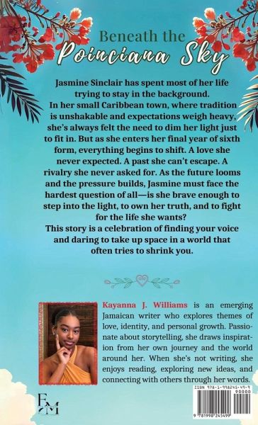 Beneath the Poinciana Sky A Young Adult Coming-of-Age Novel Jasmine Sinclair has spent her whole life playing small. In her tight-knit Caribbean town, where tradition reigns and whispers travel fast, it has always felt safer to stay quiet, stay hidden, and never ask for too much. But everything changes in her final year of sixth form. A love she never saw coming. A past she can't ignore. A rivalry she never asked for. Elliott sees Jasmine for who she really is-brilliant, brave, and worthy. Their connection is electric yet grounding, offering her a glimpse of a future filled with freedom and joy. But just as she begins to embrace love and self-expression, shadows from her past resurface, threatening to unravel everything she's fought to become. As secrets spill and the pressure to succeed mounts, Jasmine is forced to ask herself the hardest question of all: Will she keep hiding-or finally take up space and live out loud? Beneath the Poinciana Sky is a bold, emotionally rich coming-of-age story about first love, identity, and the courage it takes to grow into the person you were always meant to be.
