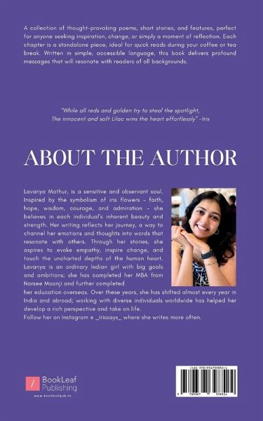 A collection of thought-provoking poems, short stories, and features, perfect for anyone seeking inspiration, change, or simply a moment of reflection. Each chapter is a standalone piece, ideal for quick reads during your coffee or tea break. Written in simple, accessible language, this book delivers profound messages that will resonate with readers of all backgrounds. "While all reds and golden try to steal the spotlight, The innocent and soft Lilac wins the heart effortlessly" -Iris