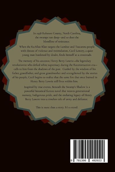 From the legendary rebellion of Henry Berry Lowrie to the courageous stand of the Lumbee and Tuscarora communities at Hayes Pond, this is the remarkable story of a people whose voices refused to be silenced. Set in 1958 Robeson County, North Carolina, "Beneath the Swamp's Shadow" follows twenty-two-year-old Cecil Lowery, a direct descendant of the renowned Lumbee hero Henry Berry Lowrie. Drawing strength from the fiery legacy of resistance passed down through generations, Cecil faces a new threat when the Ku Klux Klan invades Indigenous territory, wielding cross burnings, intimidation, and terror. But the Klansmen, concealed by white hoods and blinded by hatred, severely underestimate what awaits them-a fiercely united community, armed not only with weapons but with a deep, unyielding pride shaped by centuries of struggle and solidarity. In vivid, authentic detail, this story captures the tension-filled moments leading up to the historic confrontation at Hayes Pond, a pivotal night that would reverberate through the Civil Rights era. Intertwining ancestral tales with the intimate, everyday battles faced by Lumbee families, "Beneath the Swamp's Shadow" stands as a testament to resilience, cultural pride, and the unwavering promise that a community rooted firmly in their heritage will never yield. This powerful narrative brings history vividly to life, honoring the unbreakable spirit of a people determined never to bow.