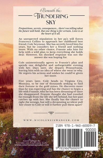 Love and secrets are unpredictable and there's no telling what the future will hold. Growing up in a Pennsylvania mining town, Francesca Collins never imagined how a stipulation in her father's would upend everything she holds dear. It forces her to make a decision, but is it one she willing to live with? After the hardships from the civil war and the death of Frannie's father, Cole Seymour is determined to keep her safe from angry miners and those in town who wish her ill-will. What he doesn't anticipate is his promise to her father included far more than he was willing to give or so he believed. Desperate and with no other options, Frannie convinces Cole to help her but a week later, threats come at her from all sides. She flees town, leaving Cole with nothing but regrets and unanswered questions. Five years later, Cole heads to Montana, looking to find his fortune in the gold mines. Little does he realize, he's about to rediscover the one woman he could never forget - Frannie. Beneath the Thundering Sky is the first hot read in the Thundering Mountain Ranch series. Every book in the series can be read as a standalone with a happily ever after in each one.