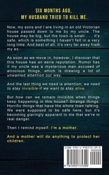 Six months ago, my husband tried to kill me. Now, my sons and I are living in an old Victorian house passed down to me by my uncle. The house may be big, but the town is small... it's safe, which is something I haven't felt in a very long time. And best of all, it's very far away from my ex. As soon as we move in, however, I discover that this house has an eerie reputation. Rumor has it my uncle was a mysterious man accused of atrocious things, which is drawing a lot of unwanted attention our way. And the last thing we need is attention; we need to stay invisible if we want to stay alive. But how can we remain invisible when things keep happening in this house? Strange things. Horrific things that have the whole town talking. We were supposed to be safe here, but it's becoming glaringly apparent to me that we're in real danger. Then I remind myself: I'm a mother. And a mother will do anything to protect her children.