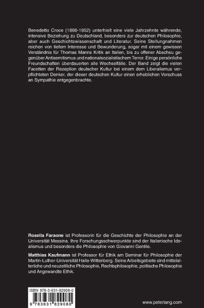 Benedetto Croce (1866-1952) unterhielt eine viele Jahrzehnte währende, intensive Beziehung zu Deutschland, besonders zur deutschen Philosophie, aber auch Geschichtswissenschaft und Literatur. Seine Stellungnahmen reichen von tiefem Interesse und Bewunderung, sogar mit einem gewissen Verständnis für Thomas Manns Kritik an Italien, bis zu offener Abscheu gegenüber Antisemitismus und nationalsozialistischem Terror. Einige persönliche Freundschaften überdauerten alle Wechselfälle. Der Band zeigt die vielen Facetten der Rezeption deutscher Kultur bei einem dem Liberalismus verpflichteten Denker, der dieser deutschen Kultur einen erheblichen Vorschuss an Sympathie entgegenbrachte.